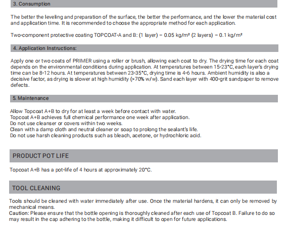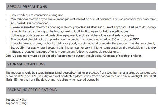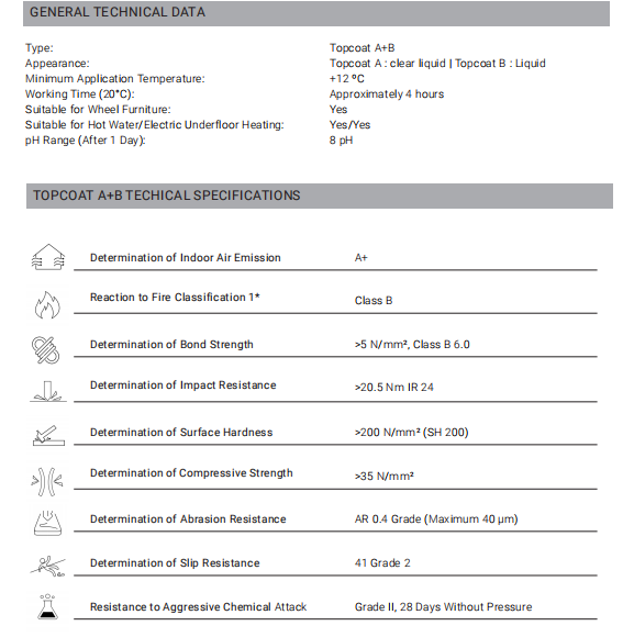 Topcoats A+B technical parameters